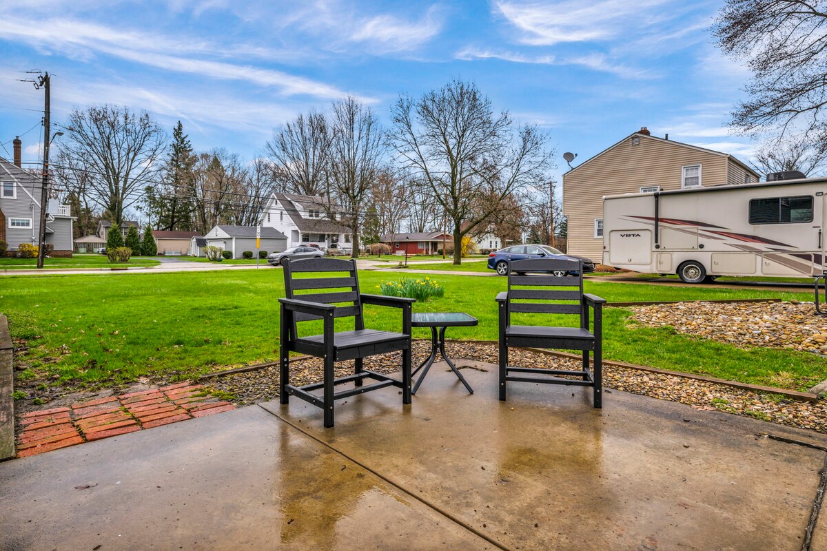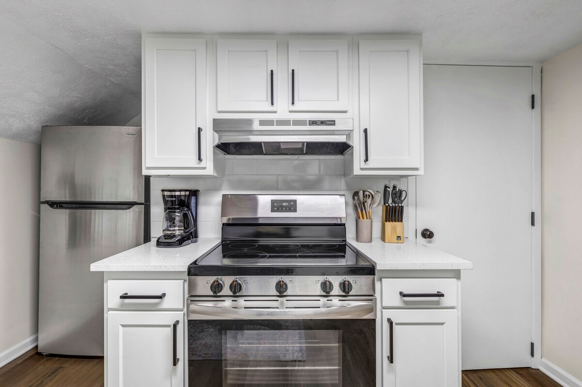 BereaUnwind in our modern and stylish upper-level suite—perfect for a cozy retreat or a small group getaway. This fully remodeled 1-bedroom unit features a king-size bed and futon, ideal for 2 adults + 2 smaller children. Enjoy a fully equipped kitchen, Smart TVs, and a private yard for relaxing or catching up with friends. Enjoy the local restaurants and cafes, explore Berea's Metroparks, or take a short drive to downtown Cleveland’s top attractions!