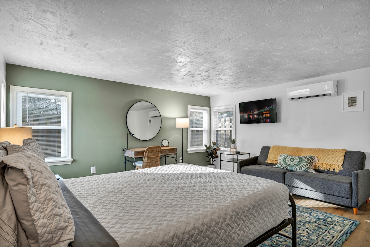 BereaThis Berea Bungalow is a fully renovated and stylish 1 BR house with a queen bed, 2 sleeper sofas, 2 SmartTVs, high speed wifi, a full kitchen, & more! The comfy space is perfect for get-aways or extended business stays! Dogs are always welcome! Fully fenced yard for your convenience. NOTE - pet fee is $30/night/dog!